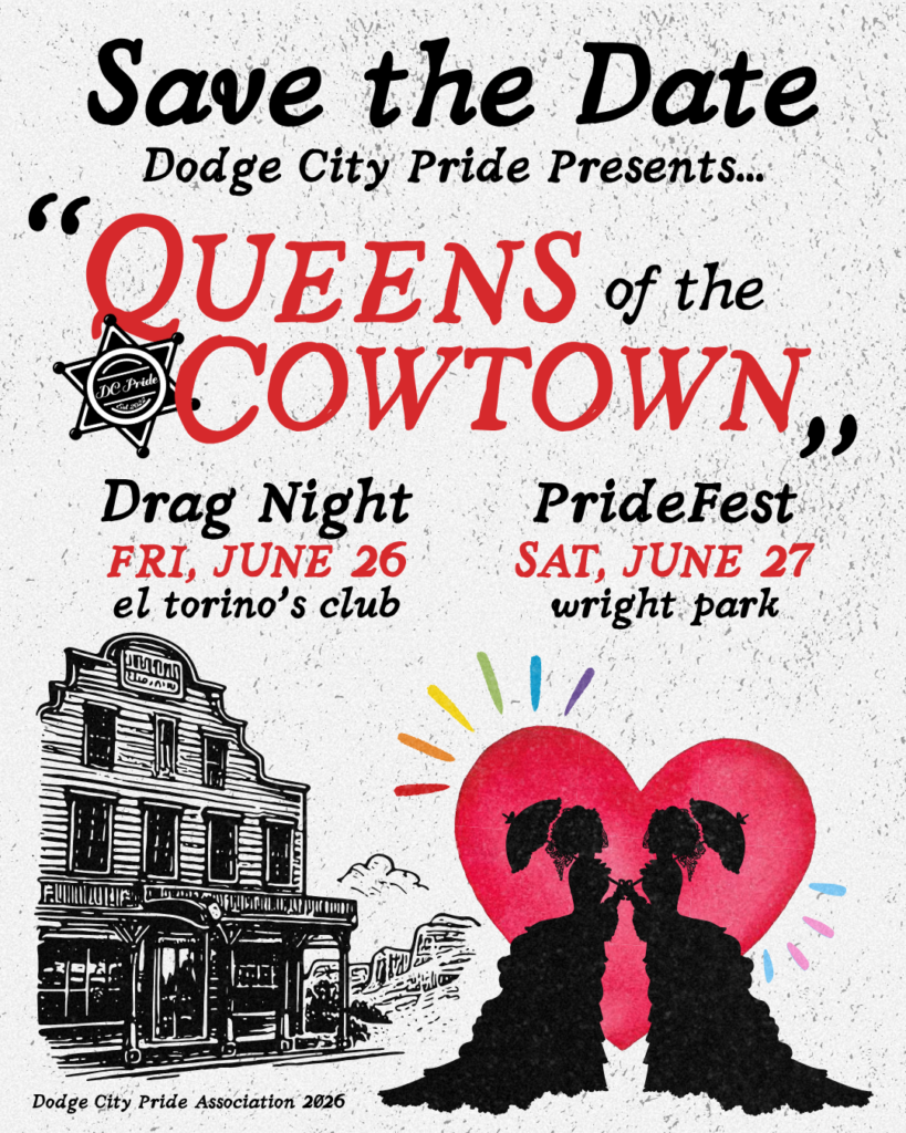 We heard you last year and we double, triple, and even quadruple checked to make sure we got the dates right! Dodge City, save the date for the last weekend of June as we celebrate PRIDE 🏳️🌈🏳️⚧️! We’re collaborating with community partners again to bring you a weekend of drag, music, activities, food, and more. In honor of the ladies who call this little city home, the theme this year is “Queens of the Cowtown”. Have ideas or suggestions? Please reach out! This is YOUR pride!